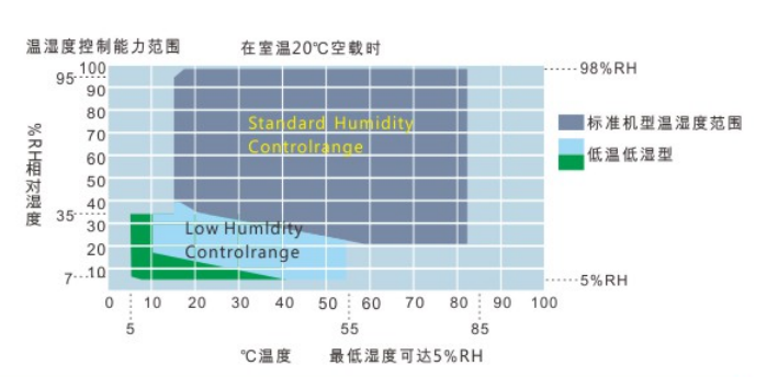 如果长时间的低温低湿测试要求是您必须的要求,那么蜂巢式化学除湿系统是您必然的选择,温/湿度可实现10℃10%RH更低的要求。