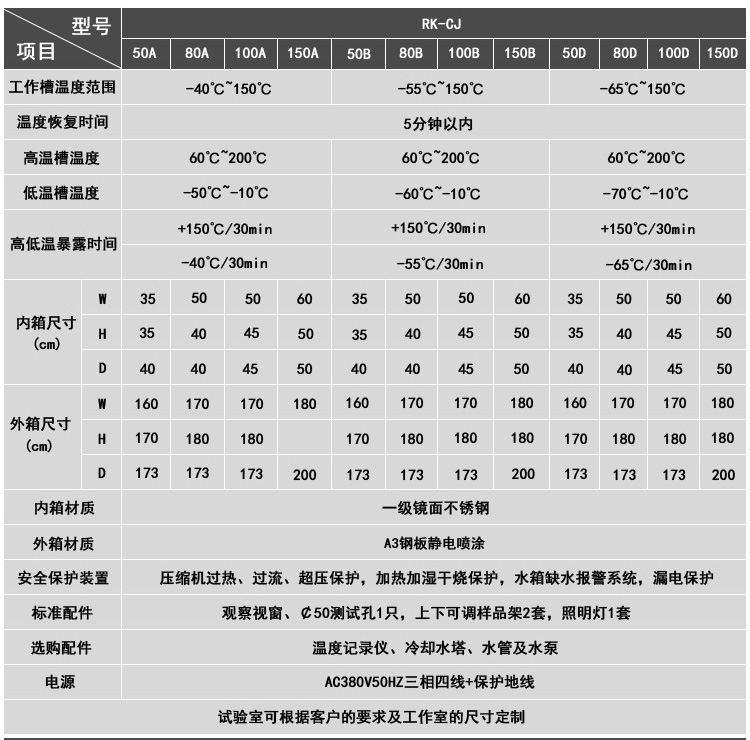 1、采用国际通行的蓄能方式进行冷热温度的冲击试验。