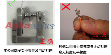新开发的端子专用夹具可靠地将端子夹住。无须担心在研磨过程中会产生端子压接部的变形、电线飞出等情况。附属的标准夹具适用于AWG12~AWG32的电线。其他公司采用简单用手拿住的方式。